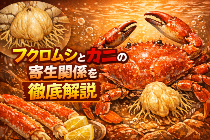 磯や市場で見かけるカニに、腹側に小さな袋状の“できもの”が付くことがあります。これはフクロムシが作る「エキステルナ」で、カニの体内外に広がる高度な寄生構造です。フクロムシとカニの関係を、分類から生活史、体内でのふるまい、宿主の“メス化”までやさしく整理します。