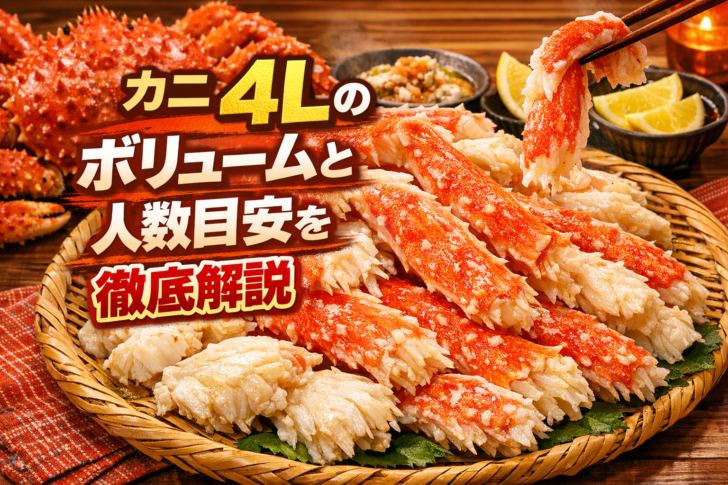 カニ 4L は「しっかり大きめ」を探す人に人気ですが、総重量と正味量の違い、肩数、何人で食べ切れるかが分かりにくいと感じる方が多いでしょう。この記事では、4Lの具体的なボリューム感を起点に、3L・5Lとの違い、表記の見方、料理別の選び方や解凍・調理のコツまで実践目線で整理します。