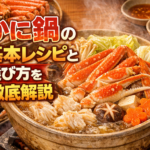 昆布だし+醤油ベースに白菜、長ネギ、きのこを合わせてカニを煮る王道レシピは、家庭でも失敗が少なく、うま味の相乗効果が得られます(キッコーマンのレシピ特集でも同様の組み合わせが紹介されています)。