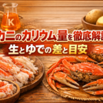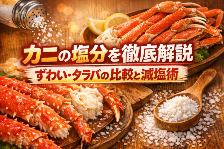 カニの塩分が気になる方へ。ズワイ・タラバなど種類や「生・ゆで・缶詰」で塩分がどれくらい違うのか、信頼できる成分表の数値をもとにやさしく解説します。日常の減塩に役立つ調理テクと、透析中の方が量を判断するための目安計算もあわせてまとめます。筆者は通販用の下処理・試食で数百回以上カニを扱っており、家庭で再現しやすい“塩分を抑える食べ方”のコツを実体験ベースでお伝えします。