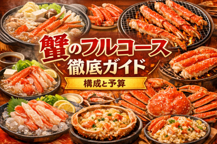 • 蟹フルコースの相場価格はどれくらい? 地域やグレードで幅がありますが、概ね1.1万〜5万円の範囲です。紅ズワイ主体は1万円台、タグ付きズワイは3万円以上が目安です(詳細は本記事「価格帯」参照)。