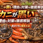 ズワイガニなどの甲羅や脚に見られる黒いつぶつぶは、カニビル(寄生性ヒル類)の卵である場合が多いとされ、人体には無害だと解説されています(出典:ウェザーニュース、鳥取市観光サイト)。