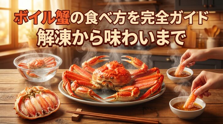 A. 冷蔵2〜5℃で時間をかけた解凍が基本です。氷水解凍は時短可。常温・レンジ・ぬるま湯はドリップ増と衛生面の理由で避けましょう。 - Q. ボイル蟹はそのまま食べられますか?おすすめのタレや薬味は?