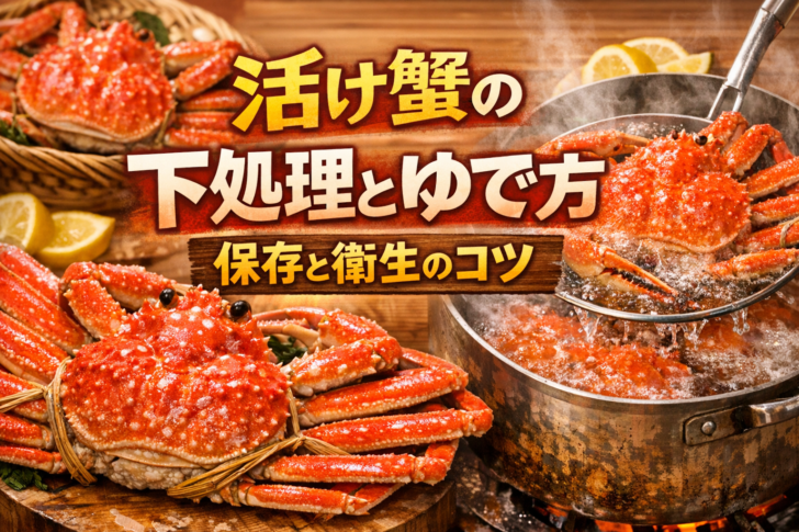 A. 当日~翌日中の調理を推奨し、短期は濡れ新聞と保冷剤で低温・乾燥防止、長期は加熱後に急冷して冷凍、解凍は冷蔵で半解凍が扱いやすいです。 - Q. 活け蟹とボイル済み冷凍はどちらがおすすめ?