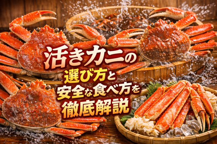 • 活きカニ(活けガニ):まだ生きている状態のカニ。生簀管理や活保冷で出荷され、鮮度の頂点にあります(参考:かに情報.com、マルツ)。