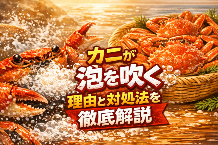 出典に基づく結論から言うと、泡は呼吸困難(酸欠)やエラの乾燥ストレスに伴うサインである可能性が高いと考えられます。越前がにの解説では、エラ保護のための粘り気のある水分が空気と混ざって泡立つ仕組みが紹介されており、危険信号として扱われています(出典:福井新聞「越前がにが泡を吹くのはなぜ?」)。