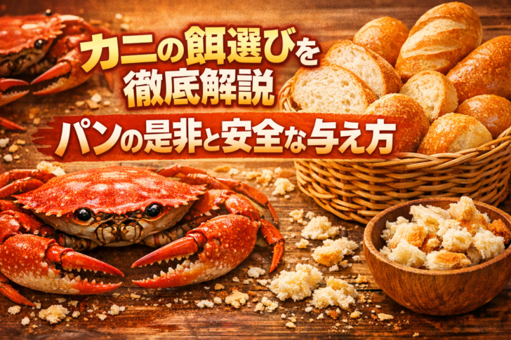 筆者メモ(経験談):汽水性のベンケイガニ類を中心に2年以上の室内飼育経験。主食を専用ペレットに固定し、補助として乾燥エビや野菜薄切りを少量ローテーションする運用に落ち着きました。パンはテスト的に一粒与える程度に留め、残渣管理と換水頻度のコントロールが安定飼育の鍵だと感じています。
