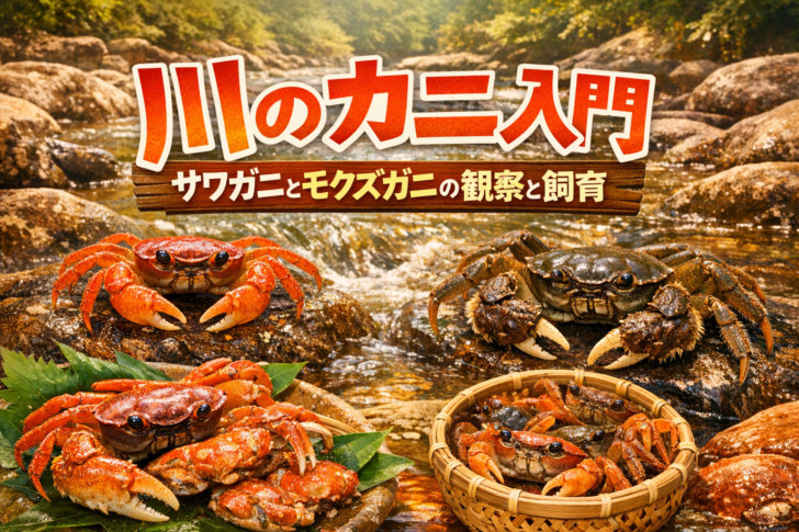 - 主な種類はサワガニとモクズガニで、識別ポイントと生態の違いが分かります