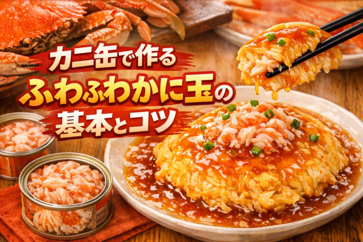 参考:macaroni掲載の基本レシピやクラシルのレシピでも、カニ缶70〜80gと卵2〜3個、ねぎを合わせ、半熟状に焼いてあんをかける構成が基本と紹介されています(macaroni/クラシル)。