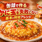 - カニ缶:缶汁は捨てずに茶こしでこし、あんのだしに一部活用すると旨みが増します。殻片が入ることがあるため、指で軽くほぐしながら確認しましょう。