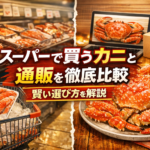まとめ – スーパーのカニ缶は、紅ずわいほぐし身で500〜1,000円、脚肉で900〜1,500円が実用的な相場です[1][2]。 種別と部位で味・用途・価格が変わり、料理はワタリ/ほぐし身、贈答はタラバ/脚肉が選びやすいでしょう[3]。 セール活用・セット買い・100g単価比較・送料込み総額の視点で、店頭と通販の最安を取りにいくのがコスパ最適化の近道です。 賞味期限表示の正しい理解と計画的購入で、食品ロスを抑えながらお得に楽しめます[4][5]