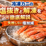 冷凍は小分けして-18℃以下、1か月程度を目安にし、解凍は冷蔵庫内で低温のまま行い再冷凍は避けます。生食は避け、特に淡水ガニの生・加熱不十分な摂取は寄生虫症の原因となるため厳禁です。