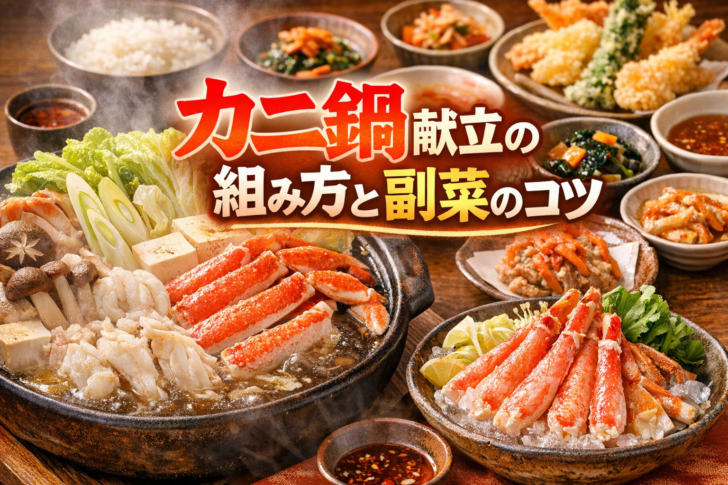 まとめ:カニ鍋の献立は「薄めの出汁」「短時間加熱」「卓上の香り」で決まります。副菜は塩分を足しすぎず、食感と彩りを補完するものを一品。最後は好みの〆で旨味をきれいに回収しましょう。