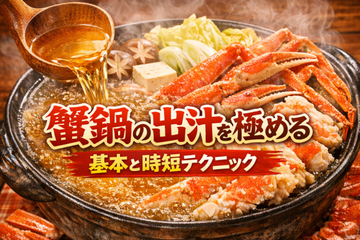 筆者メモ:通販カニの試食検証を毎冬50件以上行い、家庭で再現しやすい「かにすきのだし」を検証してきました。昆布をしっかり浸す前処理と、薄口醤油で色を上品に整える配合が、最短で失敗しないコツだと感じています。