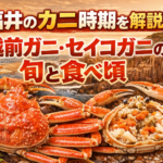 オス(越前がに)は11/6〜3/20、メス(セイコ)は11/6〜12/31、水ガニは2月下旬〜3/20が目安で、目的に合わせて「旬」を使い分けるのが満足度を高める近道です。ブランド価値は歴史とGIで裏付けられ、タグと表示の整った正規ルートを選べば失敗が少なく、相場はサイズと時期で大きく動く点を想定しましょう。通販では「産地証明・出荷日・状態(活/浜ゆで/冷凍)」を必ず確認し、家庭では“短時間で火を入れ過ぎない”が美味しさの最重要ポイントです。