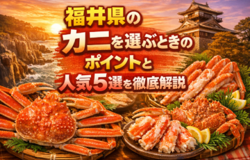 福井はオスの「越前がに」およびメスの「セイコガニ」が看板で、歴史あるブランド力と全国的な知名度を誇ります。オスは解禁から3月中旬までの長い期間で冬の食卓を支え、メスはやはり短期集中の旬となります。呼称の整理として、福井では「越前ガニ(オス)」「セイコガニ(メス)」と表現されることが多い点は押さえておきましょう(参考:1st-motorsのまとめ記事 https://www.1st-motors.gr.jp/mag/567/)。