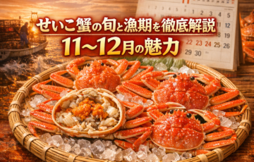 カニ 美味しい 時期」は種類や産地で大きく変わりますが、結論だけ先にまとめると次の通りです。ズワイガニは11〜3月、タラバガニは春(4〜6月)と冬(11〜2月)、毛ガニは主に1〜5月、花咲ガニは5〜9月、紅ズワイガニは通年流通しつつ冬に良個体が増える傾向があります。なおズワイガニは多くの日本海側で11月に漁が解禁され、解禁直後〜年末は身入りが良く甘みが濃いと紹介されています(やまがた庄内北前ガニの解説より)。