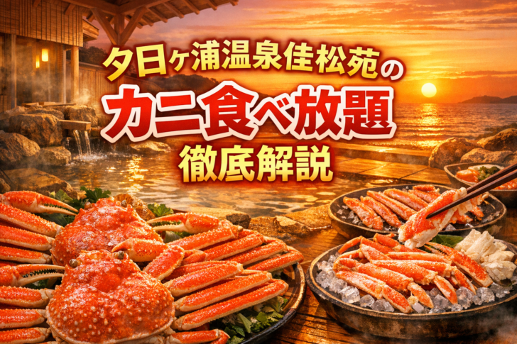 - 夕日ヶ浦温泉・佳松苑のビュッフェは、蟹刺しから鍋・雑炊、寿司やローストビーフまで幅広く楽しめる「カニ食べ放題」が魅力です。公式情報・楽天トラベルの情報を参照。