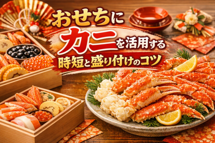おせちにカニを少量加えるだけで、彩り・うまみ・満足感が大きく伸びます。まずは時短レシピから着手し、余裕があれば蒸し物に展開するとスムーズです。